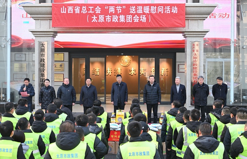 省人大常委會(huì)副主任、省總工會(huì)主席王純代表山西省總工會(huì),向太原市政集團(tuán)贈(zèng)送“兩節(jié)”慰問(wèn)金貳拾萬(wàn)元整,集團(tuán)公司黨委書(shū)記、董事長(zhǎng)郝東輝代表企業(yè)接收。出席慰問(wèn)活動(dòng)的領(lǐng)導(dǎo)為一線職工代表發(fā)放米、面、油等慰問(wèn)物資,切實(shí)把工會(huì)“娘家人”的溫暖送到職工心坎。隨后,省人大常委會(huì)副主任、省總工會(huì)主席王純與省五一勞動(dòng)獎(jiǎng)?wù)芦@得者王曉龍和困難職工李冬生、劉少偉圍坐交流,細(xì)致詢問(wèn)他們的工作日常與生活近況,并送上慰問(wèn)金及慰問(wèn)品。