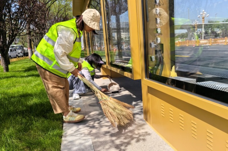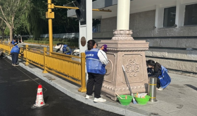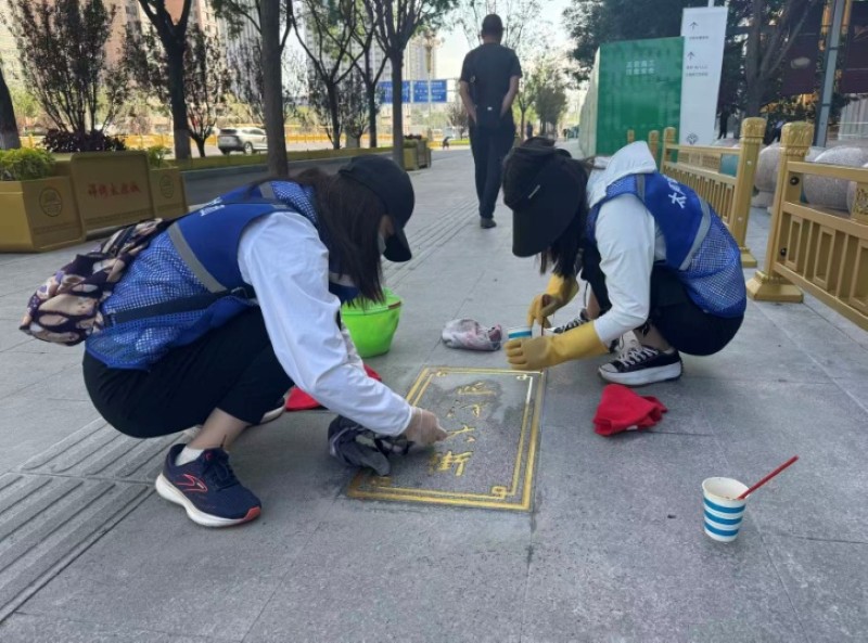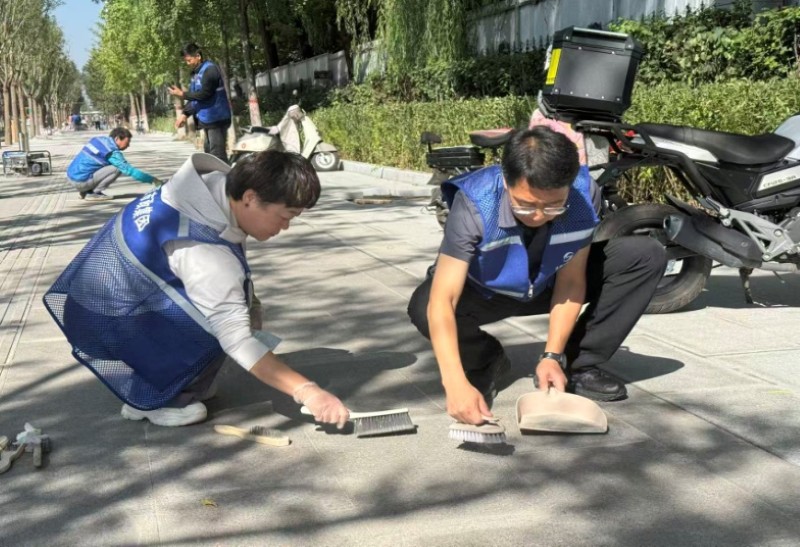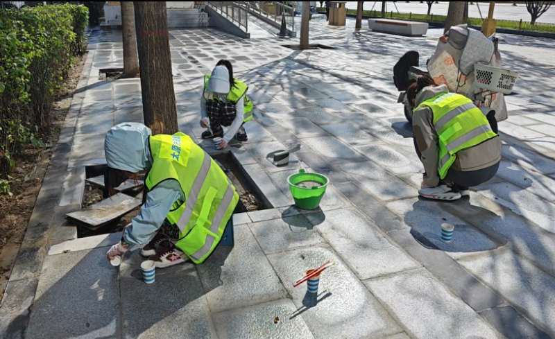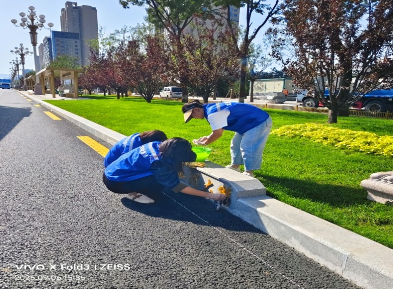 活動自9月4日起為期六天,覆蓋迎澤大街(西段)全線,重點圍繞附屬設(shè)施清潔與道路精細(xì)化維護展開?;顒又校碇y(tǒng)一藍色“太原市政集團”馬甲的志愿者們,手持長柄擦洗器、水桶、抹布、鏟刀、掃帚等工具,對道路兩側(cè)公交站臺、路燈基地、護欄、照明燈桿等設(shè)施進行系統(tǒng)清理與擦洗;同步推進地磚灌縫精細(xì)化維護作業(yè),通過專業(yè)操作,確保每一條裂縫都“嚴(yán)絲合縫”,有效提升路面耐用性與通行舒適度,以實際行動為市民出行安全與舒適保駕護航;同時,志愿者專門對道路沿線的石頭字景觀展開描金作業(yè),細(xì)刷蘸取金色涂料,一筆一畫精心描摹,成為主干道上一道兼具文化氣息與視覺美感的獨特風(fēng)景。